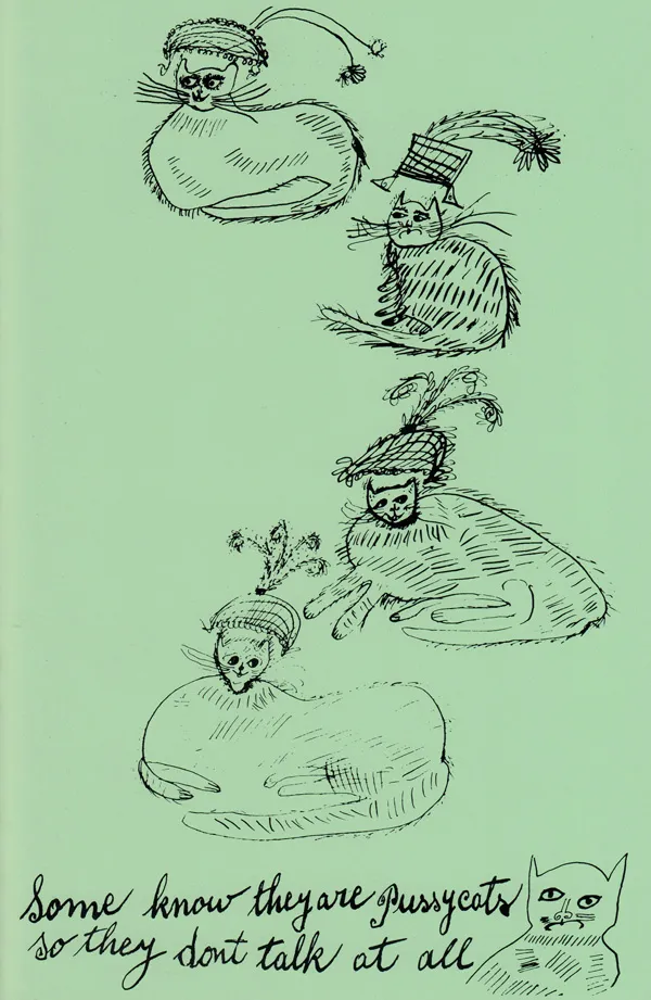 Schon der Titel des Buches zeigt Warhols feinen, eigensinnigen Humor, der unweigerlich ein Schmunzeln hervorruft. Es ist natürlich ungewöhnlich, 25 verschiedenen Katzen denselben Namen zu geben, und noch skurriler, diese Namensgebung zu brechen und eine der Katzen schlicht „Blue Pussy“ zu nennen.
