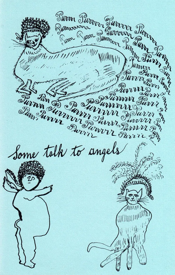 Julia, fertigte die Kalligrafie, die Schrift, für das Buch an und ließ versehentlich das „d“ am Ende von „Name“ weg – ein Fehler, den Andy charmant fand und deshalb so ließ, wie es war. Um die Verwirrung noch zu steigern, enthielt das Buch nur 16 Katzen, die alle von Warhol illustriert und als Lithografien reproduziert wurden.